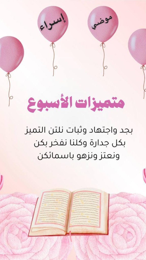 _أصبح لدي صويحبات صالحات يسرني وجودي بينهم ، مريم ونورة وأمجاد وشريفة ومايا وعواطف وولاء واسراء فالحمدلله عليهم .