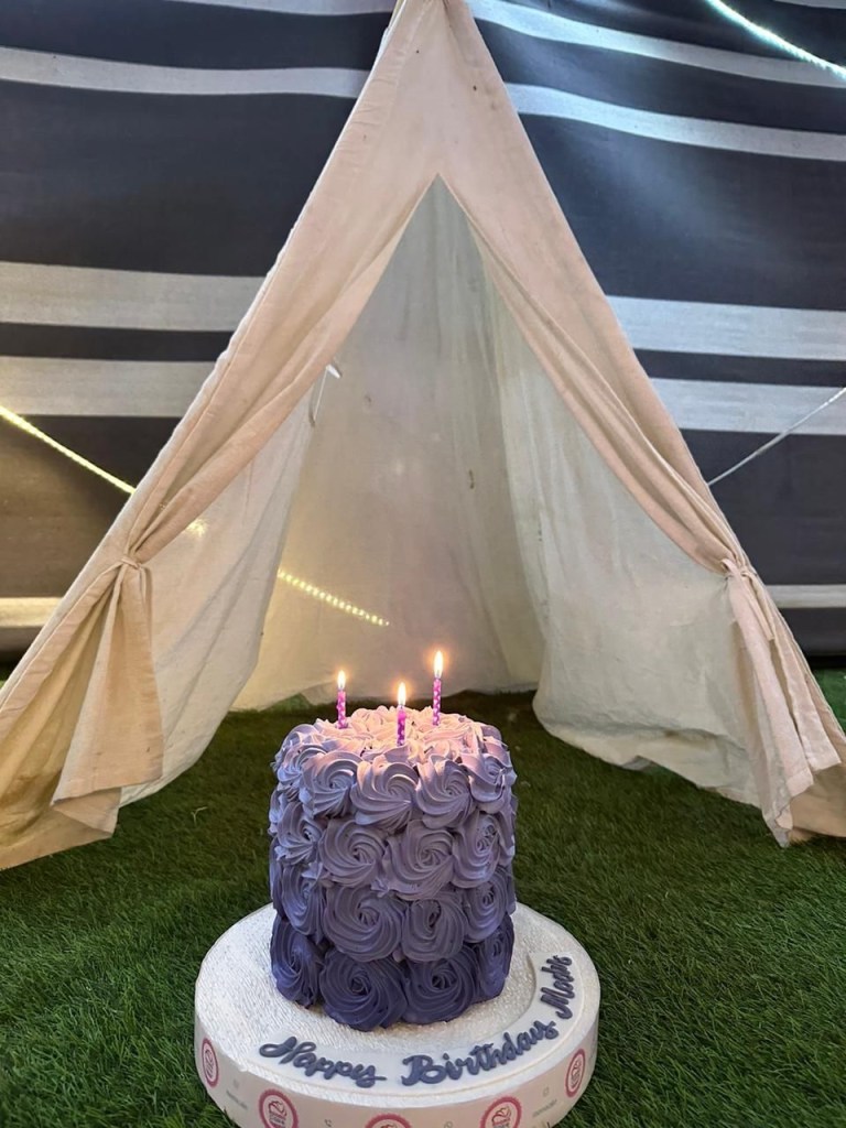 -خرجت للتخييم مع عائلتي وكان يوماً جميلاً لاينسى ، احضروا كيكة احتفالاً بعيد ميلادي مفاجأة لي.